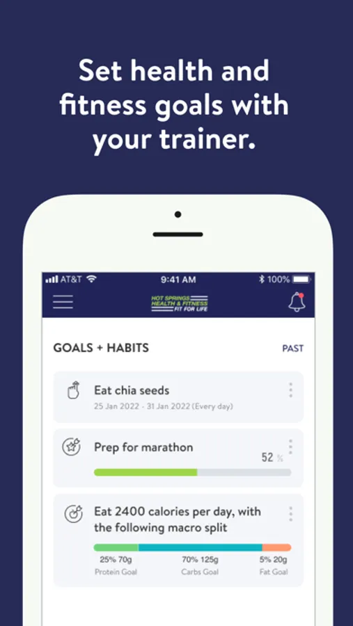 With the Hot Springs Health and Fitness App, you can start tracking your workouts and meals, measuring results, and achieving your fitness goals, all with the help of your personal trainer.