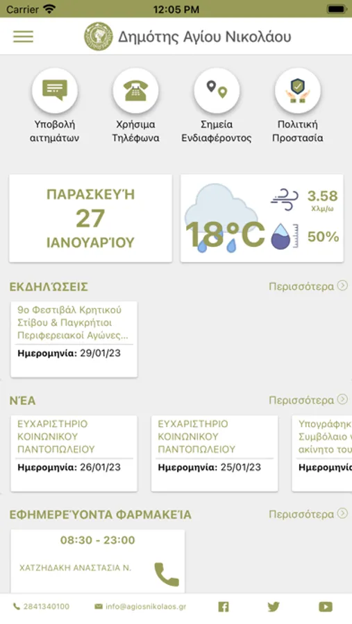 6. Άμεση Επικοινωνία με τον Δήμο μέσω τηλεφώνου, email