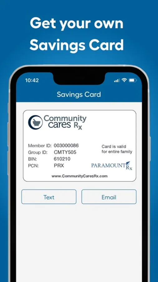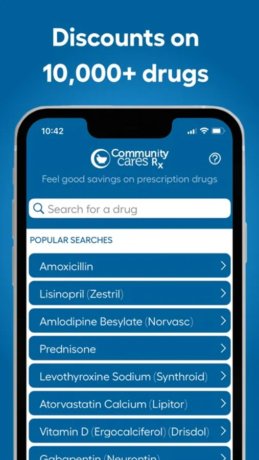 Receive up to 20% off on brands and 70% off on generics with the Community Cares Rx prescription discount card at our national network of pharmacies. It’s free and easy to use. Simply present your card with your prescription at your local pharmacy to receive the discount. You can use the app to determine the discounted prescription price ahead of time or the pharmacy can calculate the discounted price.