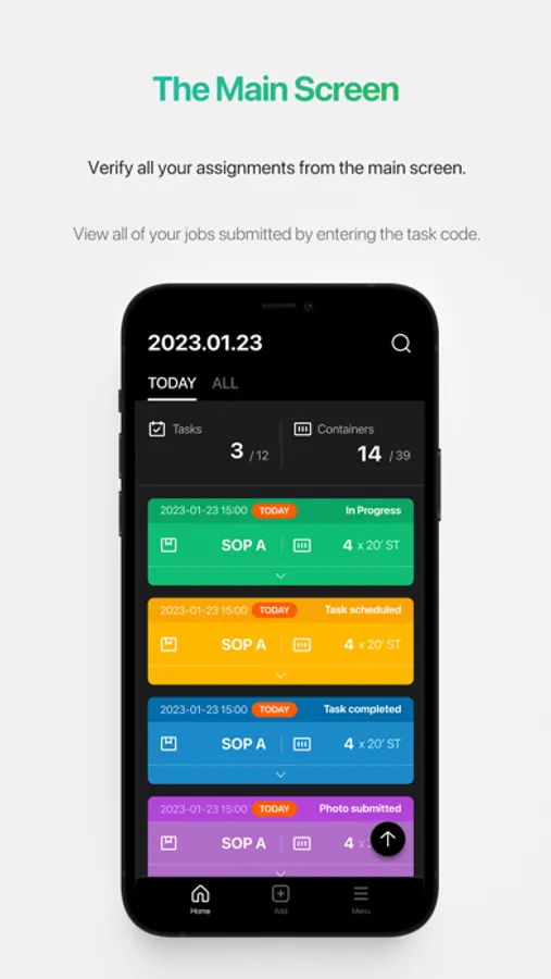 You can manage your added tasks and their progression in the My Tasks list. You can view the list of tasks for the day, the number of containers that require a task, and the status of each task at a glance.