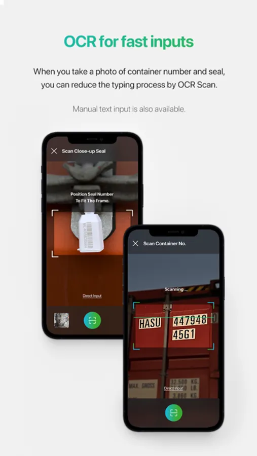 * OCR function which automatically recognizes the container number or seal number in text format.