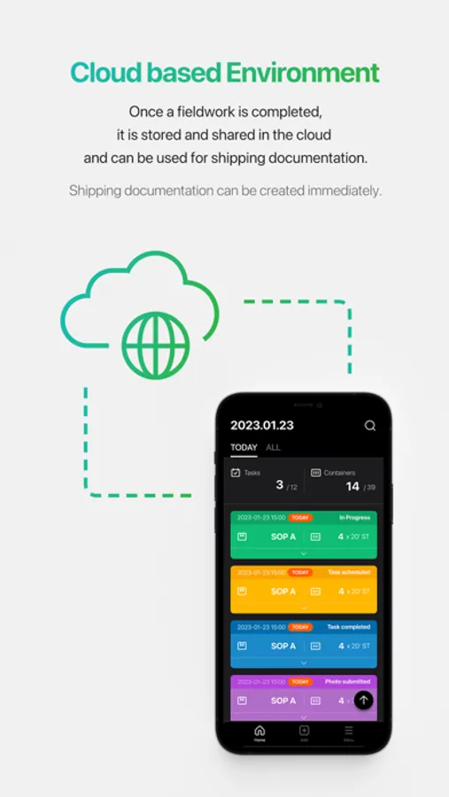 * After taking photos of the container loading operation, share and transfer into the cloud right away without additional work.