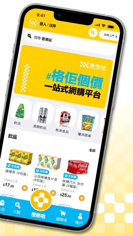 「香港站」提供過千款超市食品、急凍食材、即食食品、糧油雜貨、飲品零食、個人護理用品、生活百貨、原箱優惠等產品。