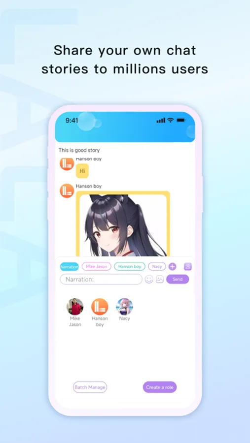 You can write your own chat stories and share to other users by LalaNovel. The stories are text-based and supported by amazing images and GIFs.