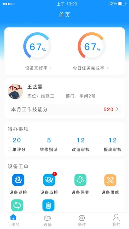 在设备设备保养,维修,巡检等维护工作流程中更加规划化和简易的操作体验。并且引入绩效考评制度,帮助管理者调动员工工作的积极性