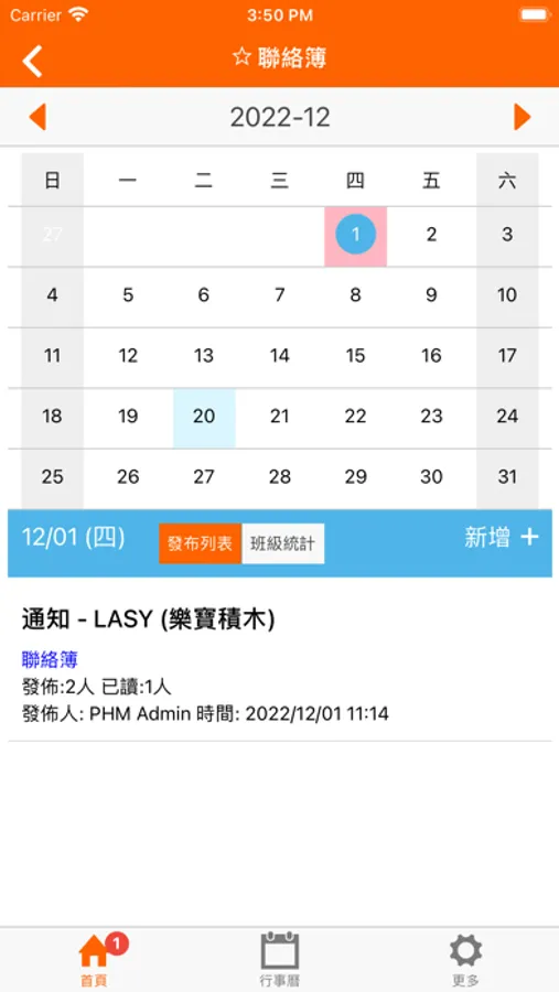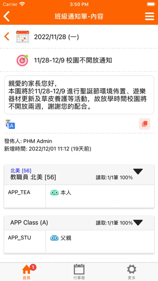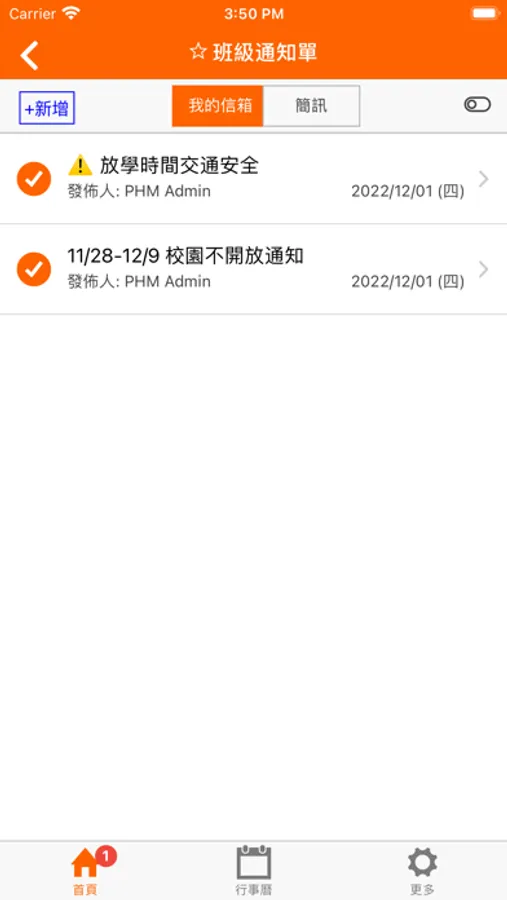 2. 班級通知單:接收班級教師或學校發送的訊息。
