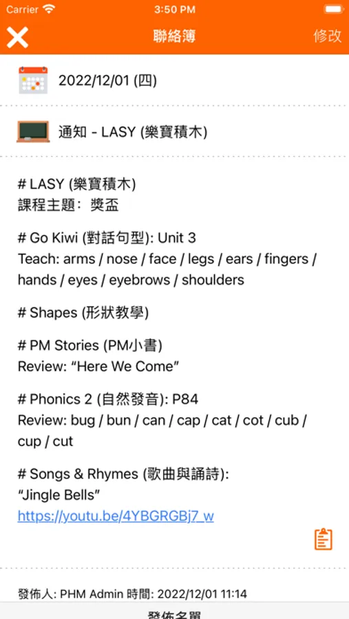 3. 聯絡簿:班級教師編輯課堂內容和作業給家長,家長可回覆與老師溝通交流。