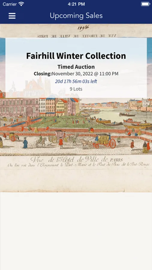 With the Fairhill Auction app, you can preview and bid in our auctions from your mobile device. Participate in our sales while on-the-go and gain access to our following features: