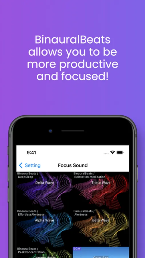 The effect can be further enhanced by layering 5 different types of Binaural Beats*, each with a different effect, to achieve the best state of concentration/relaxation, allowing you to be more productive and focused.