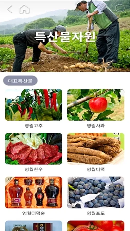 3. 영월군 주요특산물 정보를 실명으로 제공
