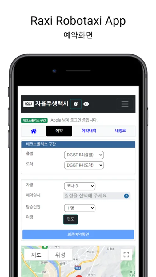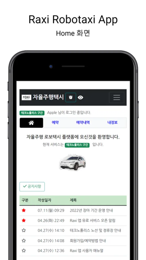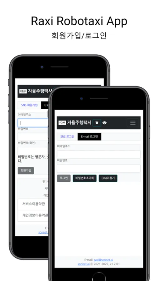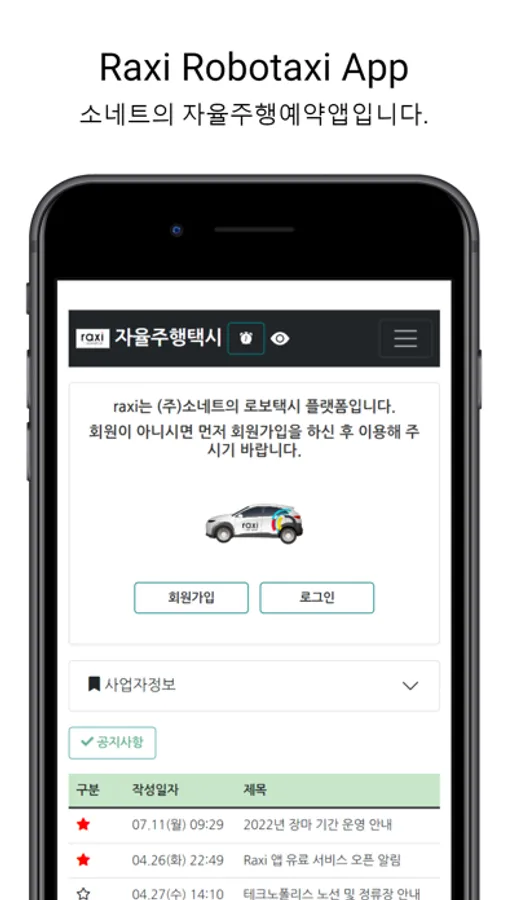 구간별 자율주행 차량을 이용하기 위해서는 앱을 통해 회원가입(이메일 또는 SNS)을 해야 합니다.