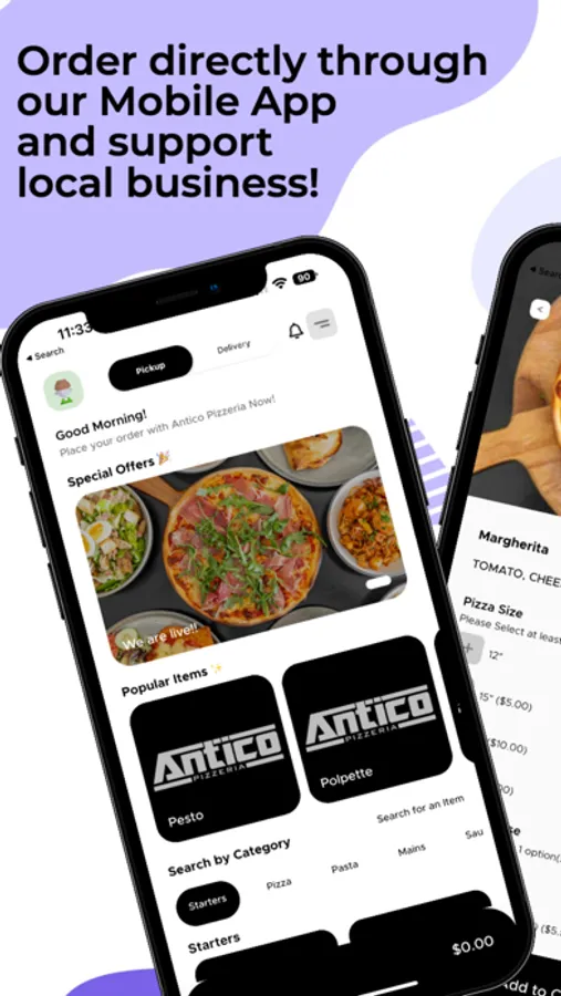 Download the Antico Pizzeria App today to gain access to our full menu, order through the app, receive exclusive in-app discounts and gain reward points for each order to use on future purchases!
