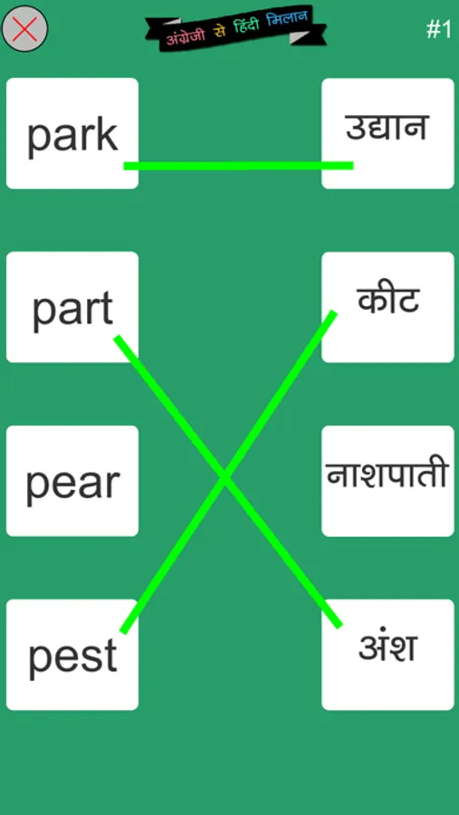 Match All Four: To progress to the next level, you must successfully match all four English words with their Hindi counterparts within the given time or attempts.
