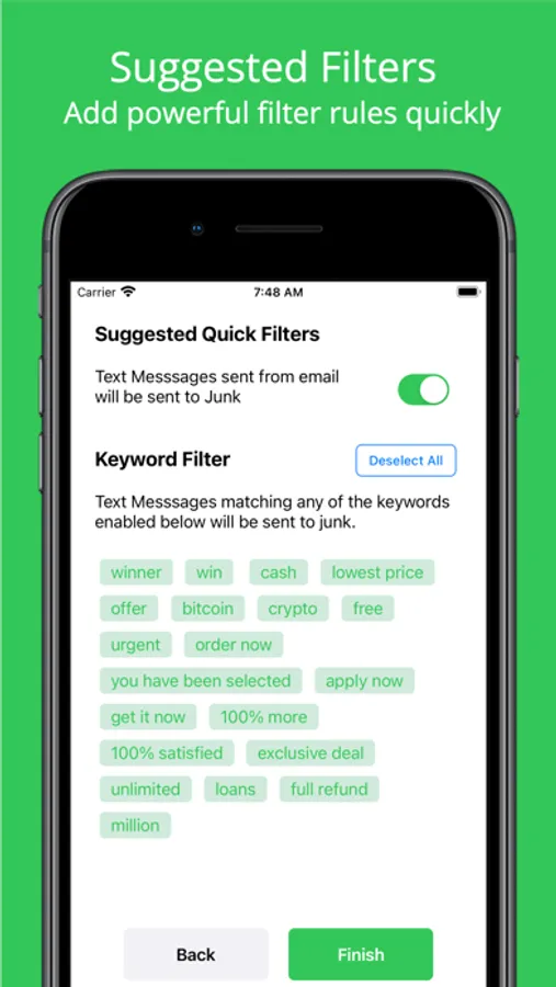 We also introduced some common suggested filters to help you set up the filter quickly to block these spam texts and protect you.