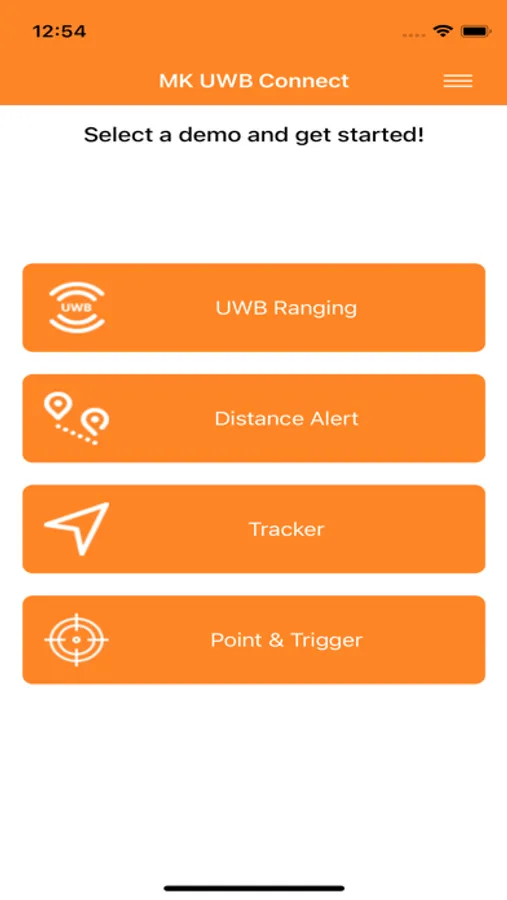 MK UWB Connect is the companion application for the MK UWB Kit Mobile Edition 2.0. It is designed to showcase several UWB demos in a very intuitive way. These demos, such as UWB Ranging, Distance Alert, Tracker and Point & Trigger, allow the user to experiment with the benefits of integrating UWB technology in mobile applications to obtain accurate, real-time location measurements.