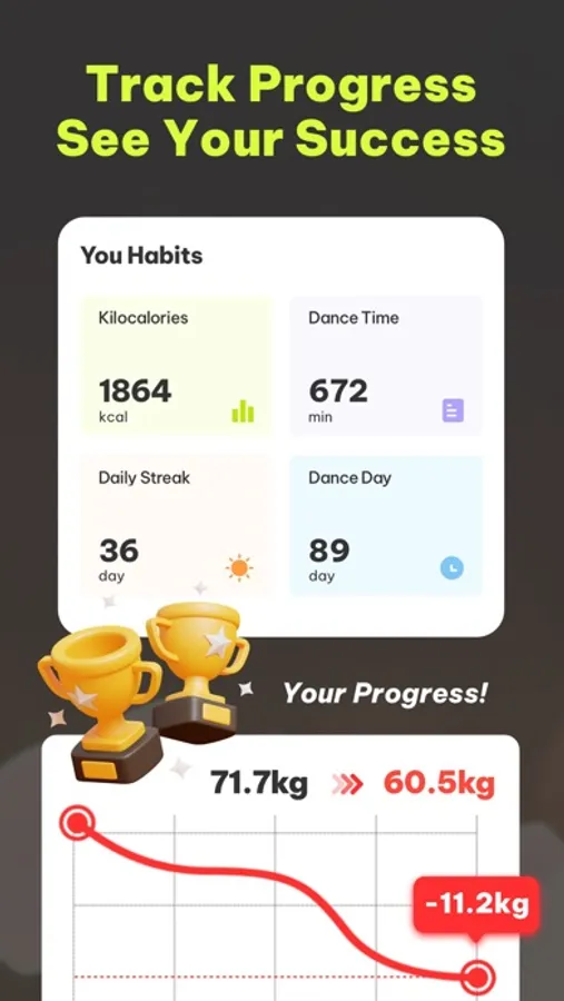DanceFitme tailors your dance workout plan according to your current body status, weight loss goals, and the areas where you want to improve. We'll generate a dance workout plan for you and in 4 weeks you can follow the routine and feel the joy of dance. With just 4 week's dance workout plan, you are more likely to keep on track.