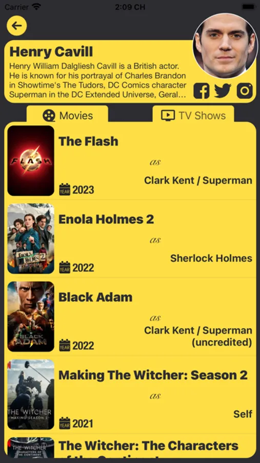 - After detect who is this actors, the app will show some info of this actors like:brief, facebook, instagram, twitter and all information about Movies and TV-Show of them immediately.