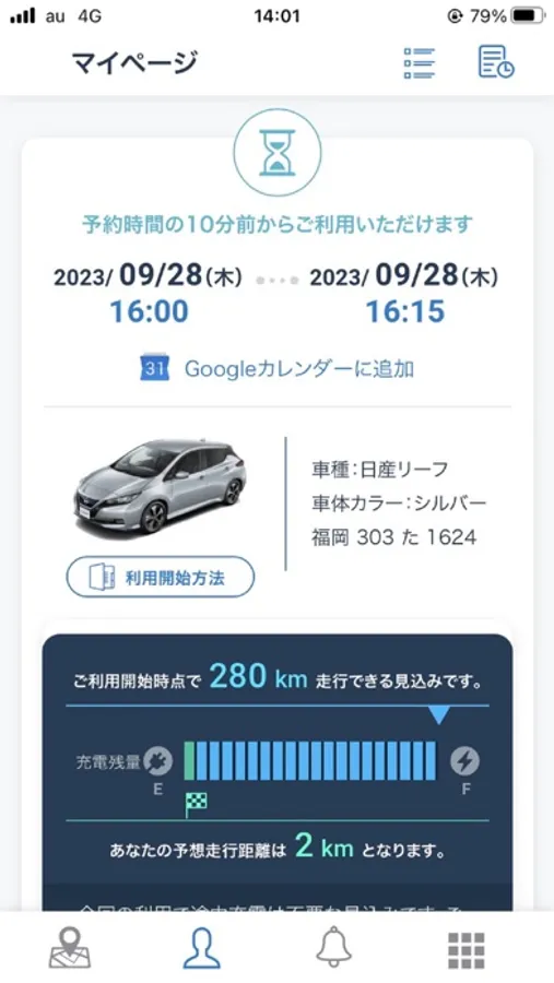 ・車の予約、解錠、予約の変更、キャンセル、延長、返却