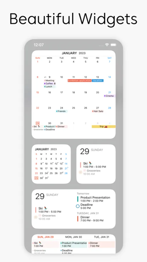- lock screen widgets (up next, next events, scheduled tasks, small calendar, new event, new task)