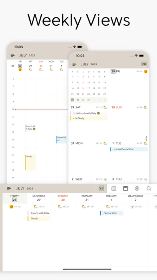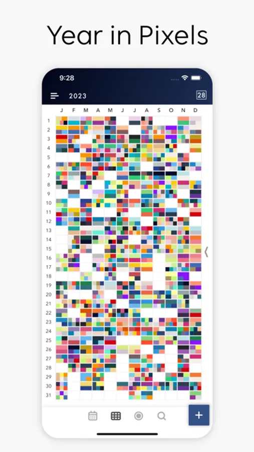 - multiple views (day, week, weekly plan, weekly spreads, timeline, monthly flow, year in pixels, countdown, tasks, search, notes, templates, colors, world time)