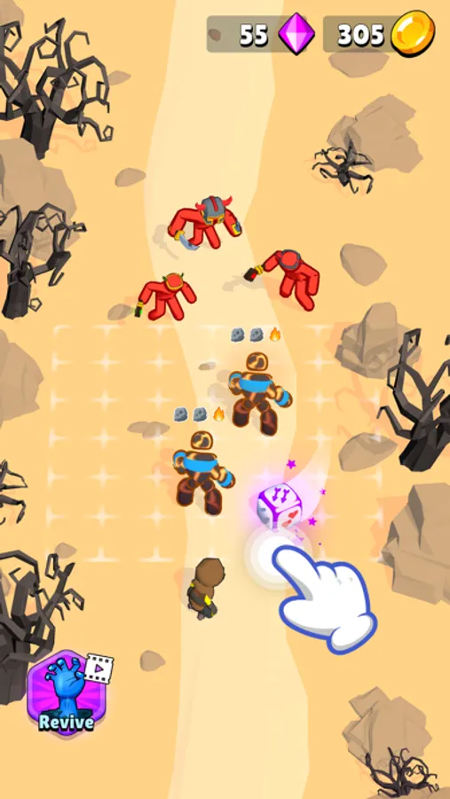 Throw the dice and turn it into warriors, mages or archers! The more dice you throw, the more stickman warriors you could summon to your army. Become the real army commander and prepare for each battle!