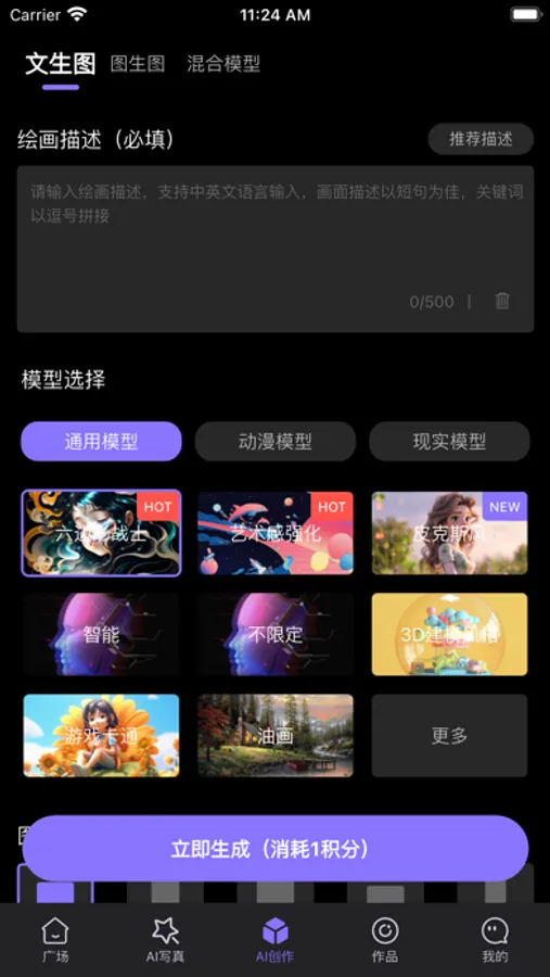 通过不同的类型和风格模型,生成独有的艺术作品。支持中文描述词。