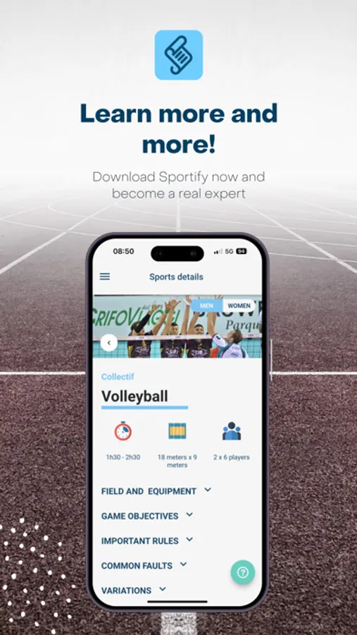 Looking for an app to learn more about the rules, subtleties and exciting stories of your favorite sports? Sportify is the app for you!