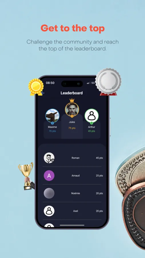 For competitors, a leaderboard is available to see who has the best quiz results. This way you can compete with other users of the application and show everyone that you are a real sports expert! You can even share your results with your friends and have fun beating them.