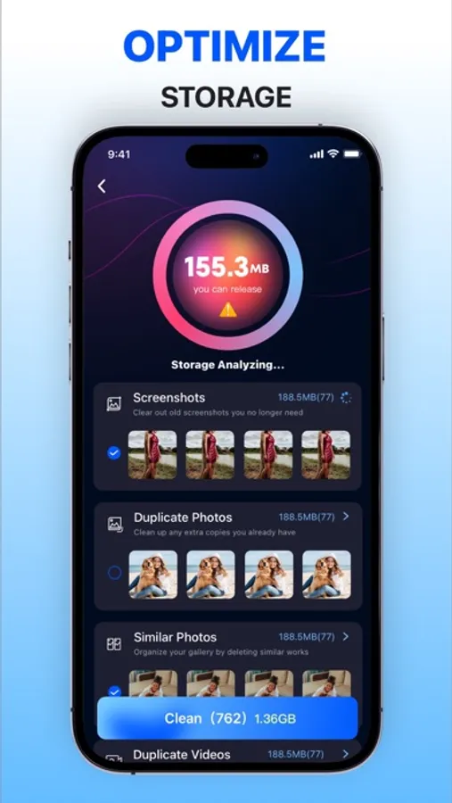 Tired of the tedious task of cleaning your photo library? AI Clean Upgear-Speed Booster makes the process simple, enjoyable, and secure. Let's have fun cleaning !