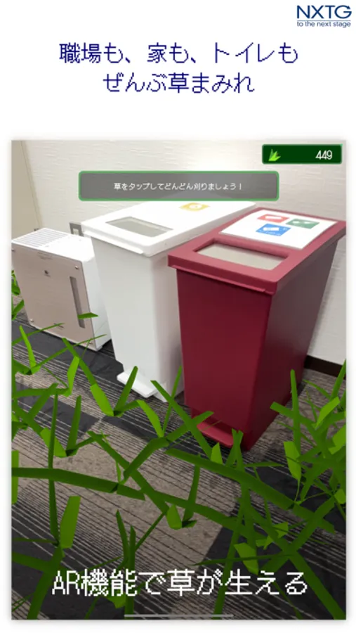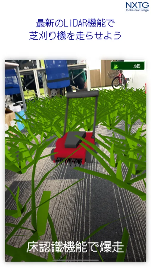 画面をタップして草刈り機を走らせ、たくさんの草を刈りましょう!