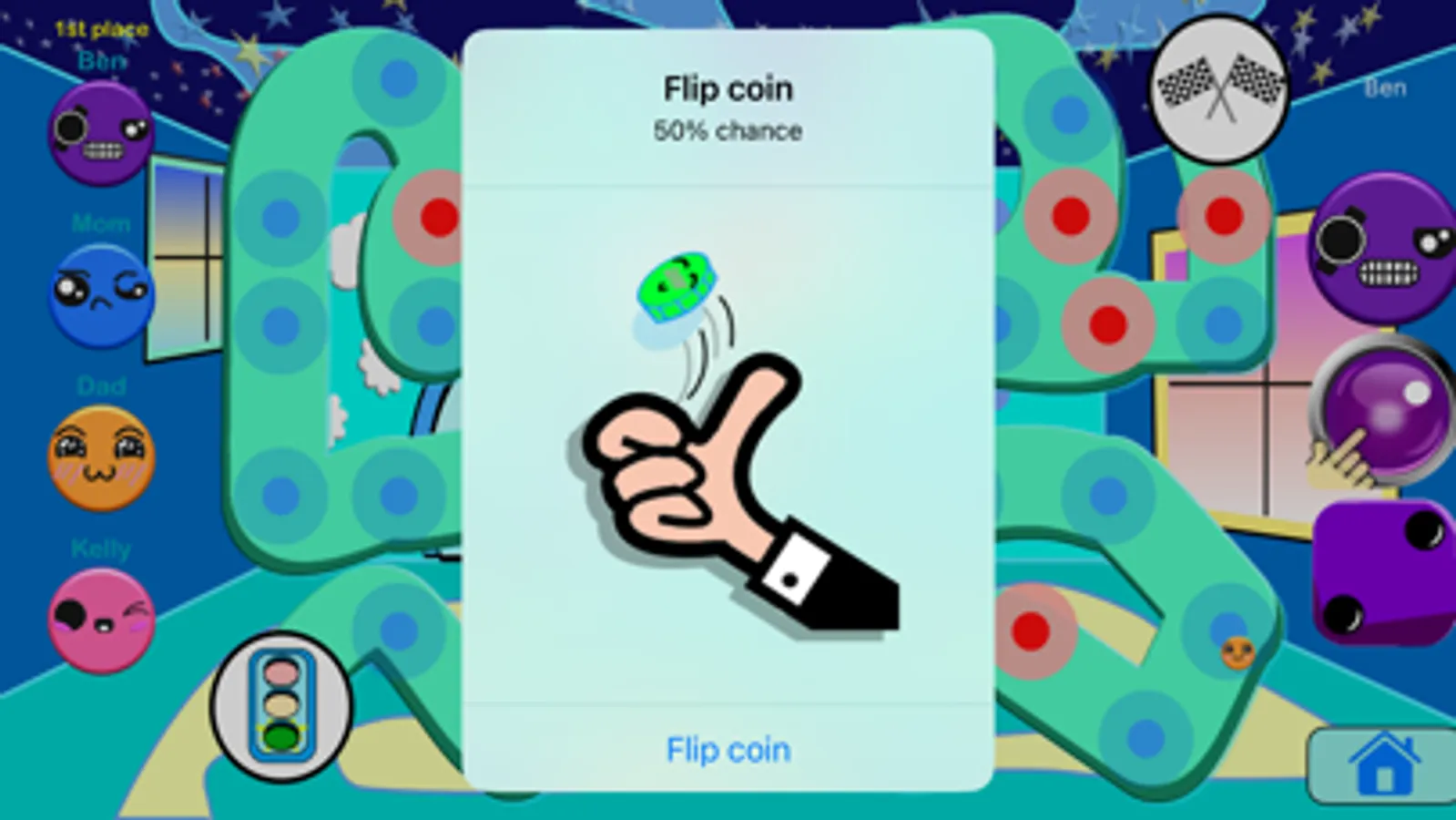 Step into a world of tabletop adventure with our strategic turn-based game! Each roll of the digital dice brings a thrilling challenge as you land on a red spot and flip the coin. From here you have 50% risk to be sent all the way back to the start?