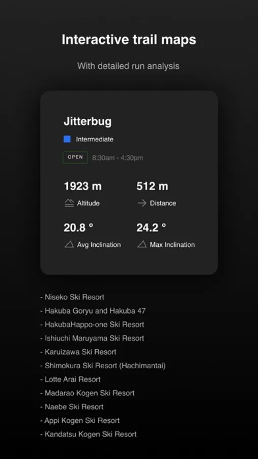 Currently supports the following ski resorts in Japan. (must be at the ski resorts to activate tracking)