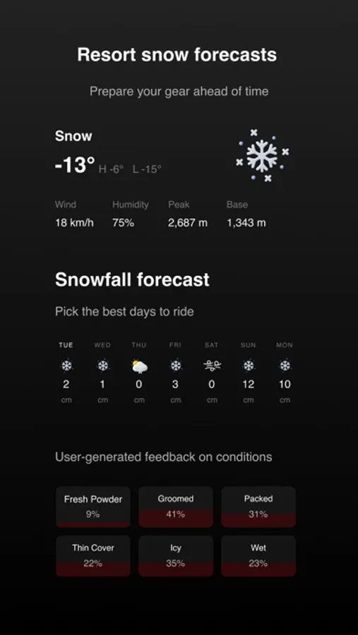 Visit ski resort pages to access resort leaderboards, lift wait times, and snow and weather forecasts for each resort.