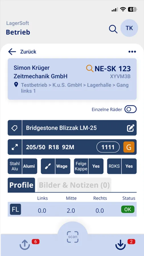 The Lagersoft app is designed to simplify the process of tracking and organizing wheels in a warehouse. The app uses QR codes to scan each wheel and assign it to a specific storage location. When a new wheel arrives at the warehouse, it is assigned a unique QR code that is printed and attached to the wheel. With a mobile device running the Lagersoft app, warehouse employees can simply scan the QR code and assign the wheel to an available storage location.