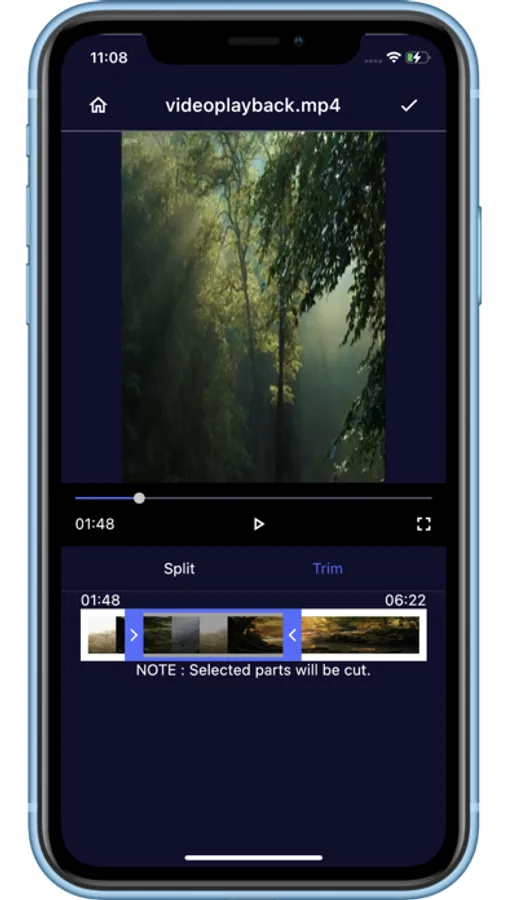 - Trim Video : Select part of video and trim.