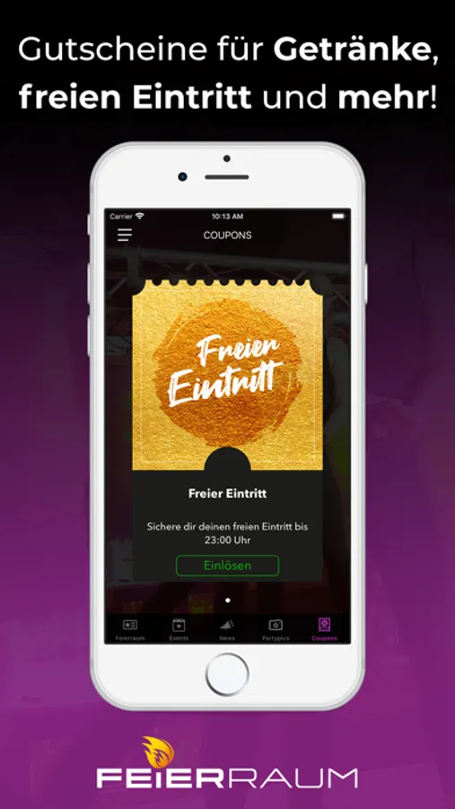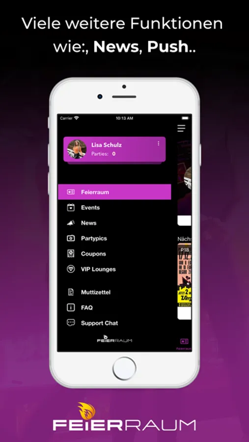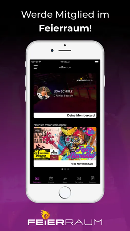 Lade dir unsere Feierraum App und werde Mitglied im Feierraum.