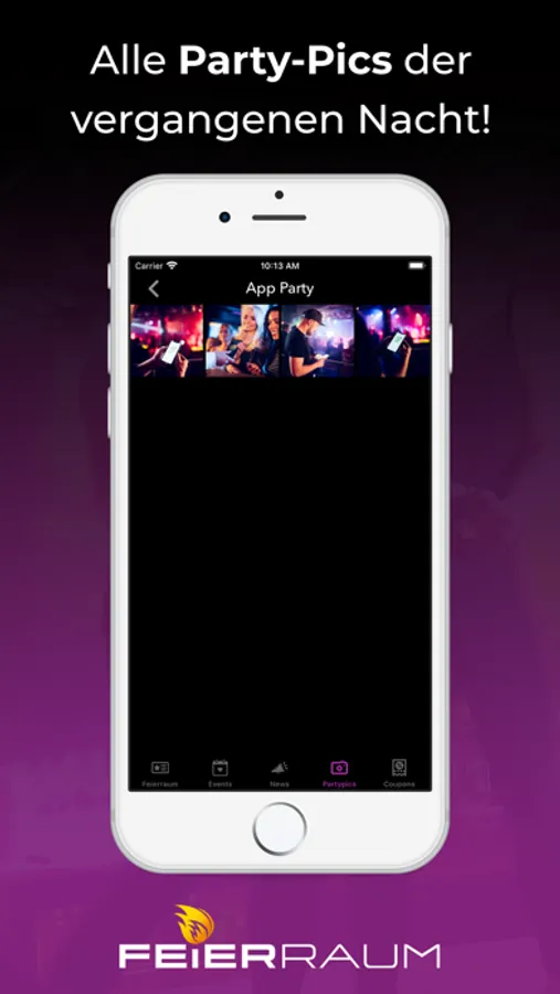 Du erfährst als erster, wann die nächste Party steigt und profitierst dabei noch von fetten Aktionen. Zum Event sparst du mit unseren Gutscheinen bares Geld. Damit du dich am Tag danach auch an den geilen Abend erinnern kannst, stellen wir alle Party-Pics in der App bereit.