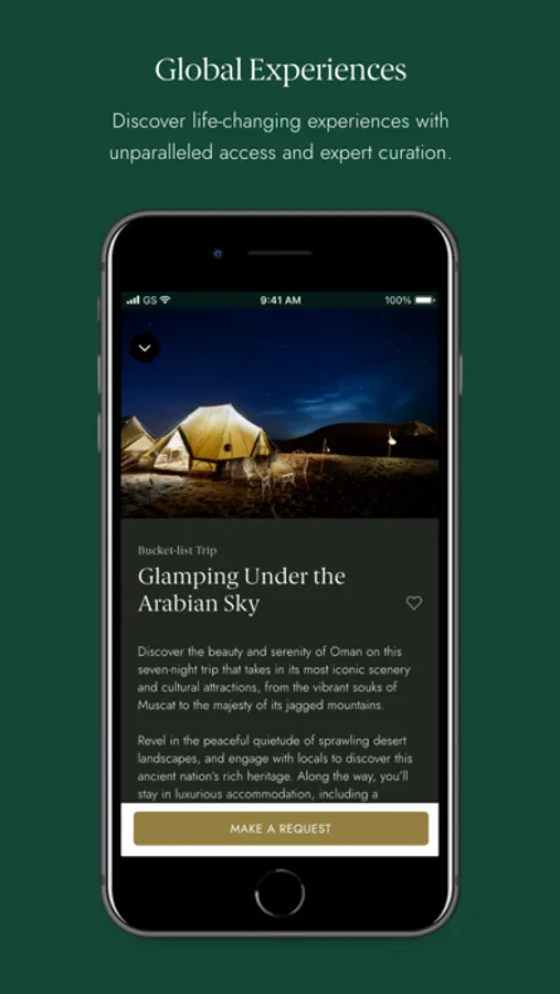 Members benefit from unparalleled access across the categories of travel, experiences, dining, and luxury goods with a response to requests guaranteed within 60 seconds, 24/7/365.