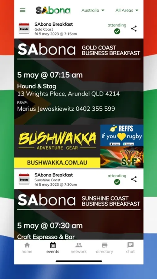 Connect with and network with fellow South Africans around the world. Find people and events near you.