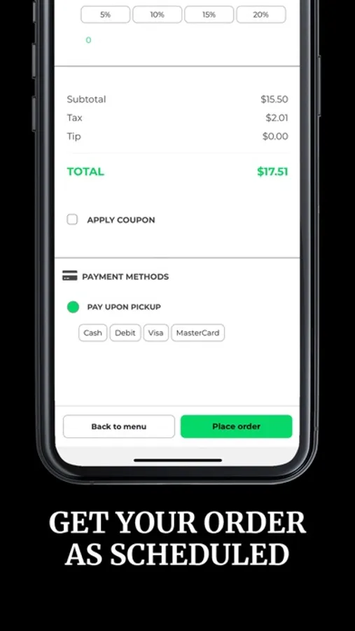 • Pay online upon delivery or pickup with Debit, Visa, Master Card, Amex, and cash
