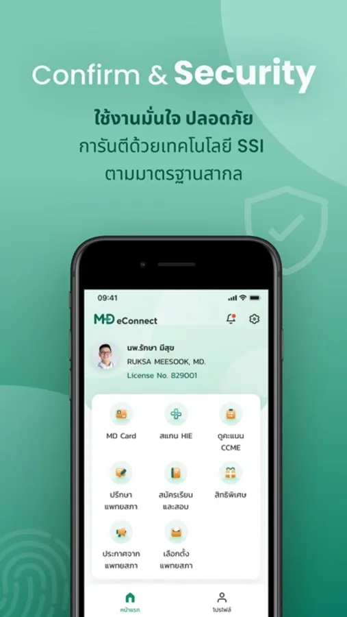• ปลอดภัย ปกป้องข้อมูลส่วนบุคคลที่ได้มาตรฐาน ด้วยเทคโนโลยี Self-Sovereign Identity (SSI) และรองรับการยืนยันตัวตนเข้าใช้งานด้วยรหัส PIN และ Biometric