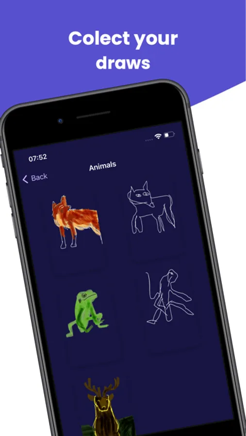 Save your drawings to your personal gallery and share the challenge with your friends.