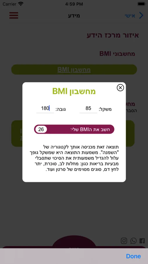 אפליקציה זו היא מוצר איכותי נוסף מבית "תזונה מושכלת" שנועד להנגיש לכל אחד ואחת אפשרות לבקרה והשראה על אורח חיים בריא. ולמשתתפות התוכנית - אף ליווי אונליין צמוד של המנטורית האישית.