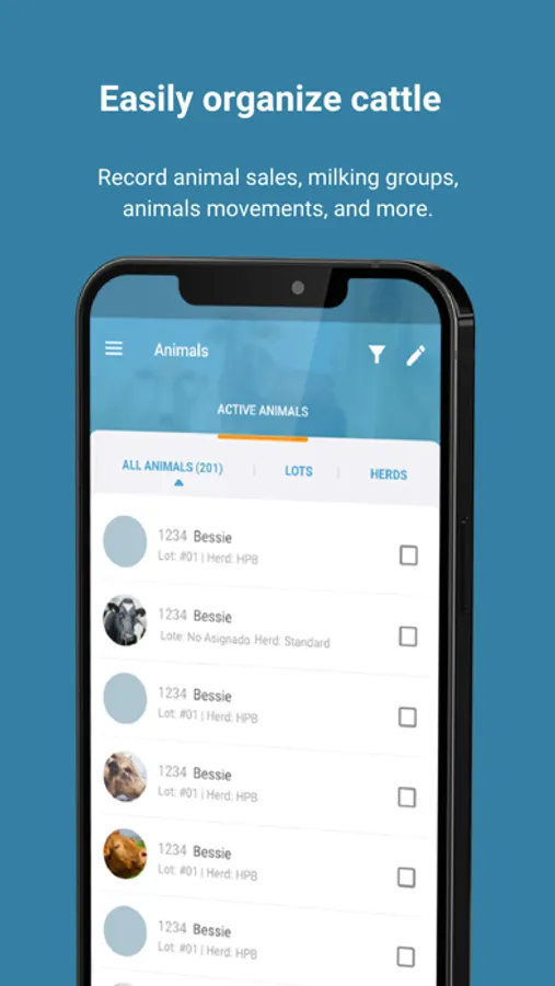 • Organize cattle into a "herd" and "lot" to control movement and reports
