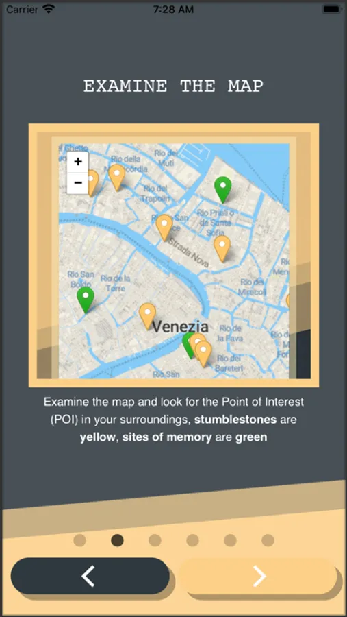 The app is based on the public history project Stolpersteine by German artist Gunter Demnig as a reference and guide. Each stumbling stone - a small brass stone embedded in the cobblestones of the street - commemorates a victim from their last-known freely-chosen residence. Today, more than 70,000 memorial blocks exist in more than 1,200 cities and towns across Europe, Russia, and South America.