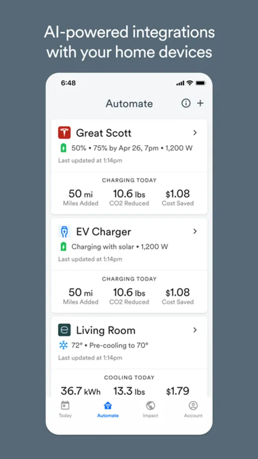 Automate your heavy loads including EV charging and air conditioning so you can use as much renewable energy as possible. Torus has a growing library of electric vehicle and smart thermostat integrations to help you connect and begin automating your home.