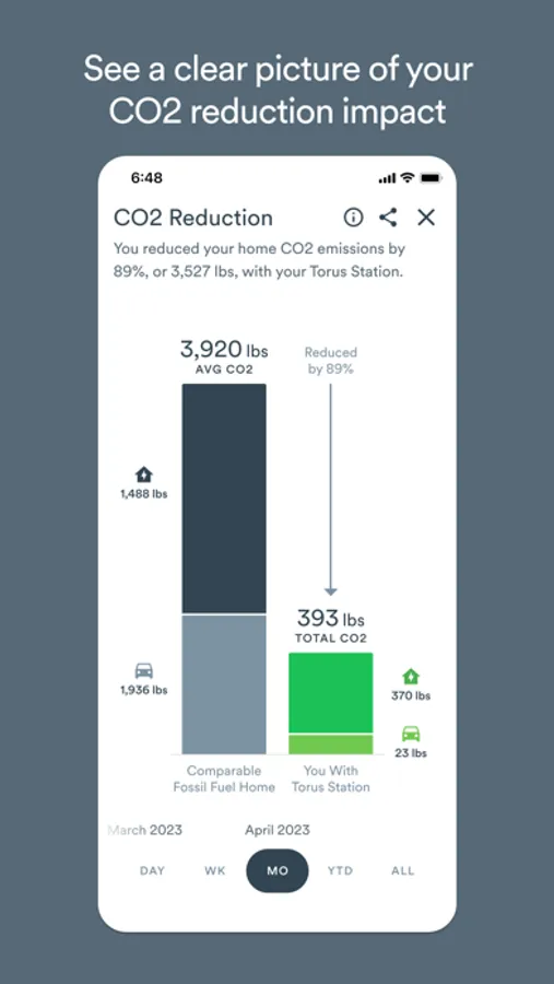 Our app is designed to help customers with a Torus Station maximize their CO2 reductions, energy cost savings, and grid independence.