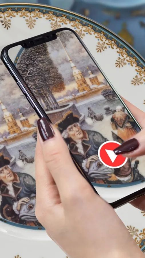 Даже если вы не находитесь в музее вы можете посмотреть дополненную реальность на фарфоровых тарелках у нас на сайте: https://art-via.ru/tarelki-dop-real