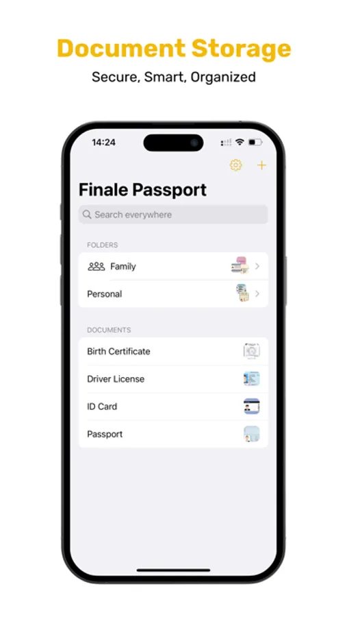 Finale Passport is a tool for storing all your personal documents in one place. Organize your important documents, like ID cards, passports, driver licenses, insurance documents, or anything else. Add document photos, digitize data, and keep everything you need at your fingertips.