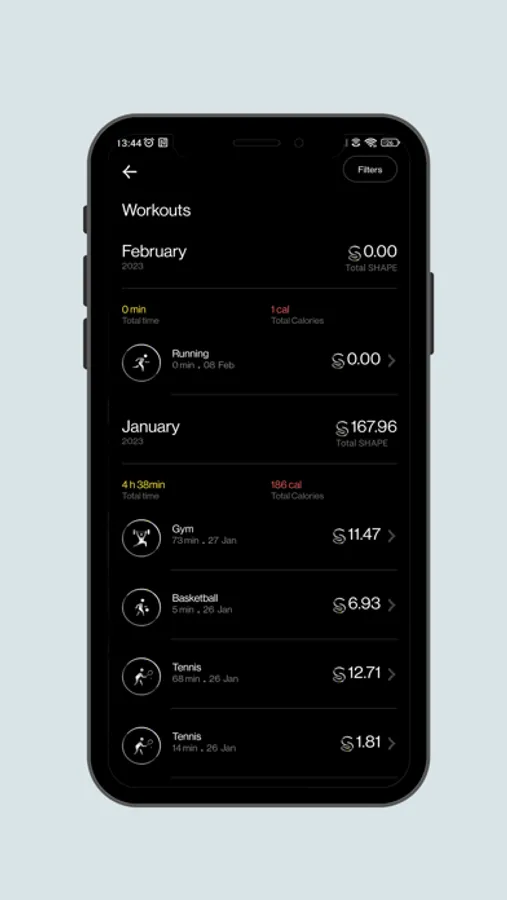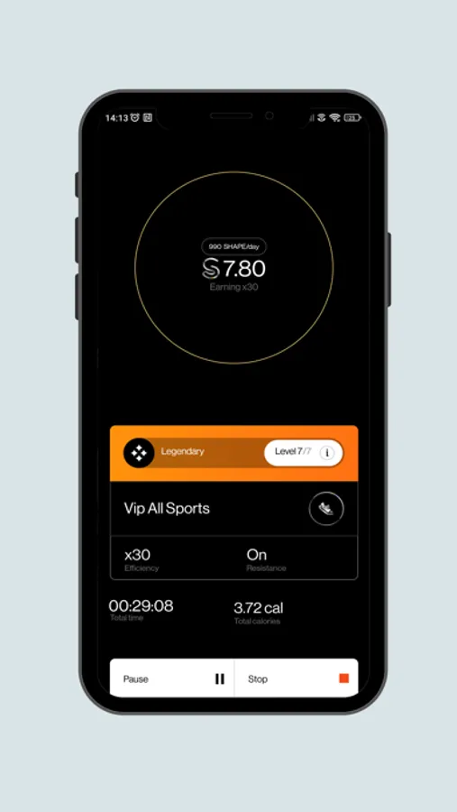 Users can choose 7 sport activity ( tennis, basketball, walk, running, soccer, gym and hiking ) and earn up to 990 SHAPE/day.